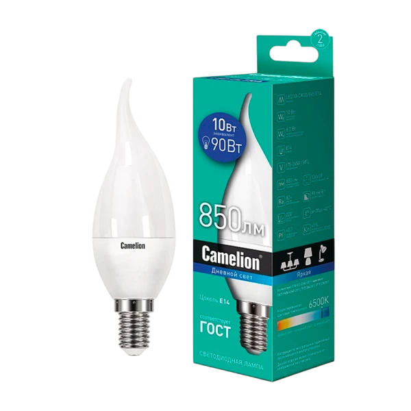 Светодиодная лампа Camelion LED10-CW35/865/E14 мощностью 10Вт идеально подходит для освещения офисных и коммерческих помещений. Обеспечивает яркий свет с цветовой температурой 6500K.