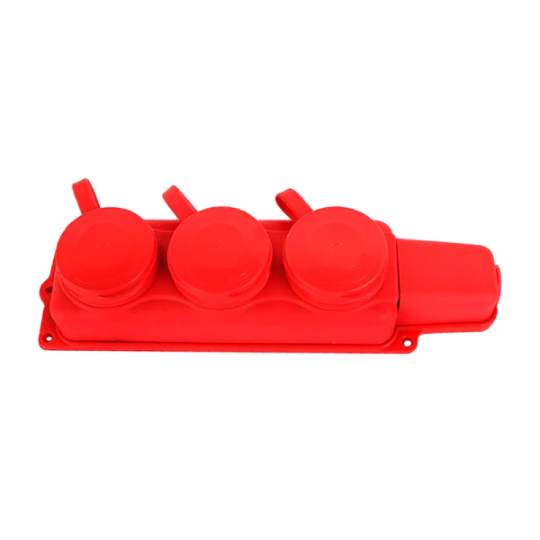 Колодка штепсельная VOLSTEN Sb1-M3Z Red на 3 мест, красного цвета, предназначена для подключения электротехники в условиях повышенной влажности, обладает степенью защиты IP44.