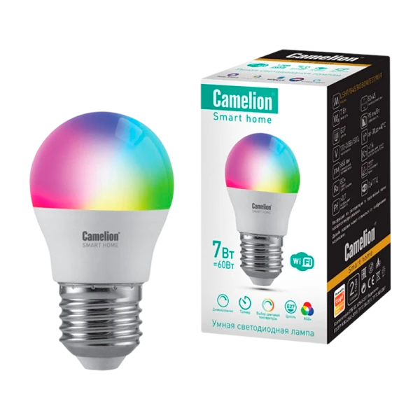 Лампа светодиодная Camelion G45 E27 7W 220V шар Smart Home RGB+WiFi LSH7 (1/10/100)