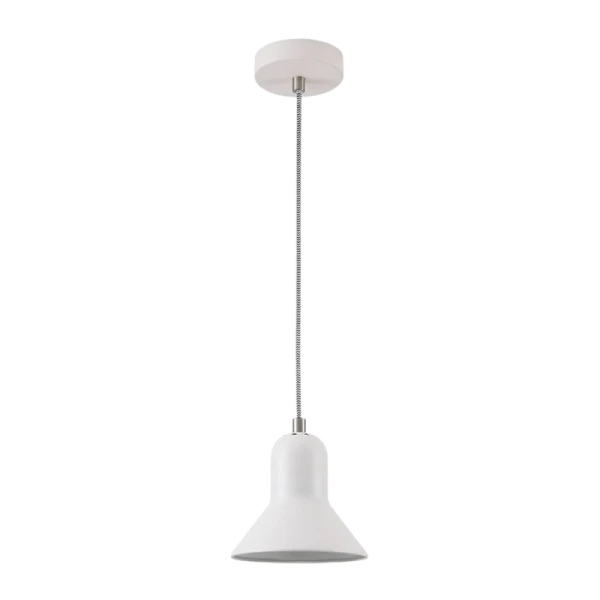 Подвесной светильник Camelion PL-602S C01 белый, серия Rome, идеален для бытового и торгового освещения. Стальной корпус, мощность 40Вт, цоколь E27.
