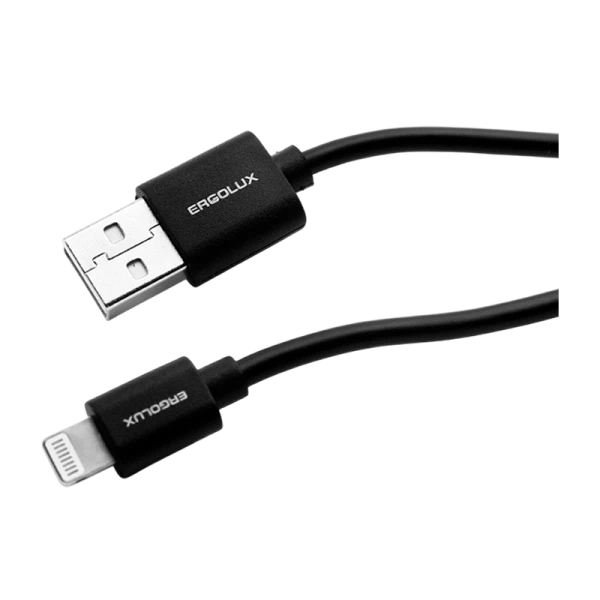 Кабель Ergolux ELX-CDC03P-C02 USB (m)-Lightning (m) 1м 2.0A ПВХ черный пакет с подвесом (1/10/360)