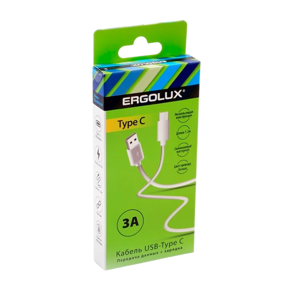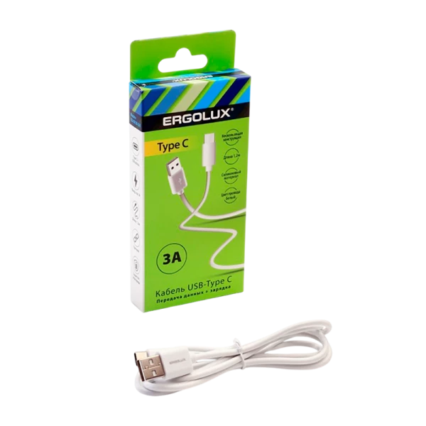Кабель Ergolux ELX-CDC02-C01 USB (m)-Type-C (m) 1.2м 3.0A белый в коробке (1/10/240)