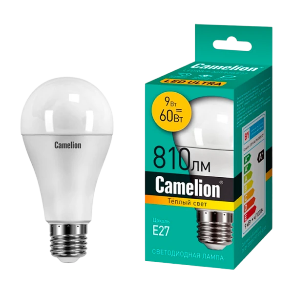 Светодиодная лампа Camelion LEDRB/9-A60/830/E27 мощностью 9Вт идеально подходит для освещения жилых, офисных и коммерческих помещений. СДЛ Camelion - это инновационное решение, разработанное на основе новейших светодиодных технологий (LED).