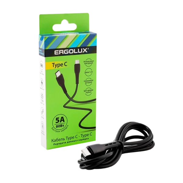 Кабель Ergolux ELX-CDC06-C02 Type-C (m)-Type-C (m) 1.2м 5.0A 80W черный в коробке (1/10/240)