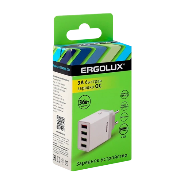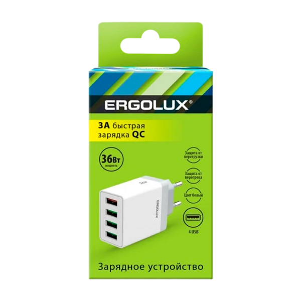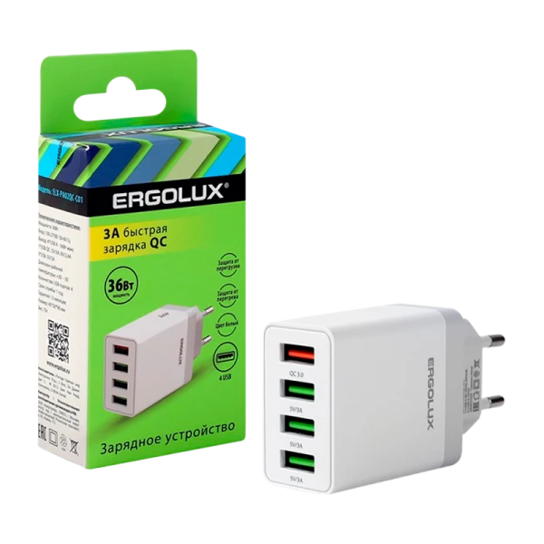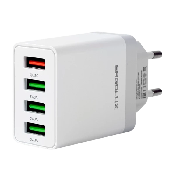 Сетевое З/У Ergolux ELX-РA02QC-C01 4USB 3.0A 36W QC3.0 белый (1/10/240)