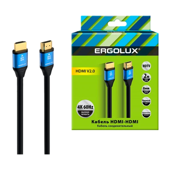 Кабель Ergolux ELX-VC01-HDMI HDMI (m)-HDMI (m) 2м 4К черный синий в коробке (1/10/60)