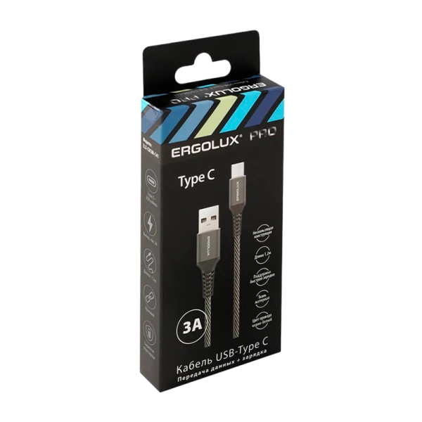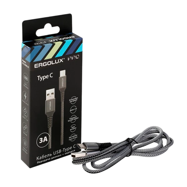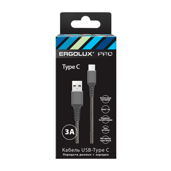 Кабель Ergolux ELX-CDC08-C41 USB (m)-Type-C (m) идеально подходит для быстрой зарядки и передачи данных. Длина кабеля Ergolux составляет 1,2 метра, выполнен в черно-белом цвете, материал - ткань.