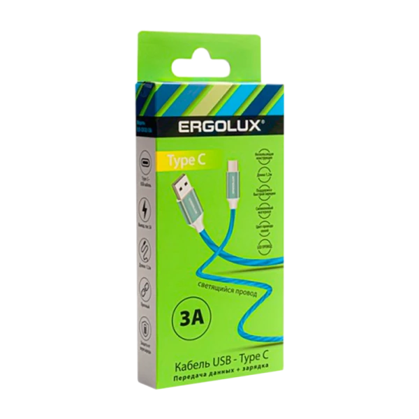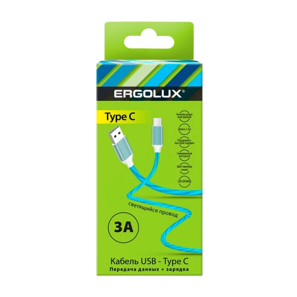 Кабель ERGOLUX ELX-CDC02-C06, созданный для зарядки и передачи данных, оснащен светящимся LED, обеспечивает ток 3А. Оптимальный выбор для мобильных устройств. Ergolux ELX-CDC02-C06 поддерживает Quick Charge 3.0 и быструю передачу данных, длина - 1,2 м.