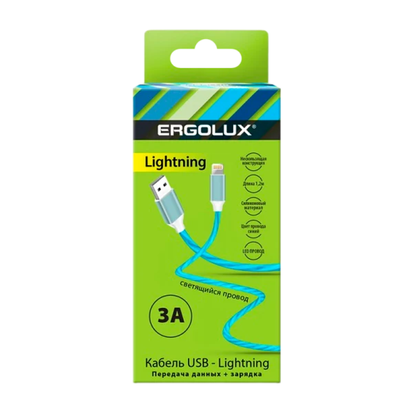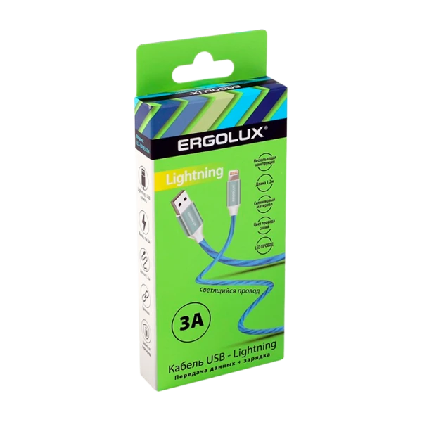 Кабель ERGOLUX ELX-CDC03-C06 предназначен для быстрой зарядки устройств Apple и передачи данных. Длина 1,2м, силиконовый корпус, синий LED свет. Мощность - 20Вт. Оснащен защитой от перезаряда.