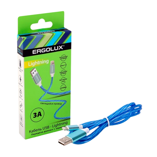 Кабель Ergolux ELX-CDC03-C06 USB (m)-Lightning (m) 1.2м 3.0A силикон LED синий в коробке (1/10/240)