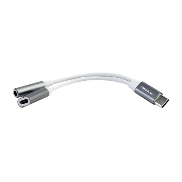 Переходник Ergolux ELX-CSA02-C01 Type-C (m)-Jack 3.5mm (f)/Type-C (f) белый (1/10/240)