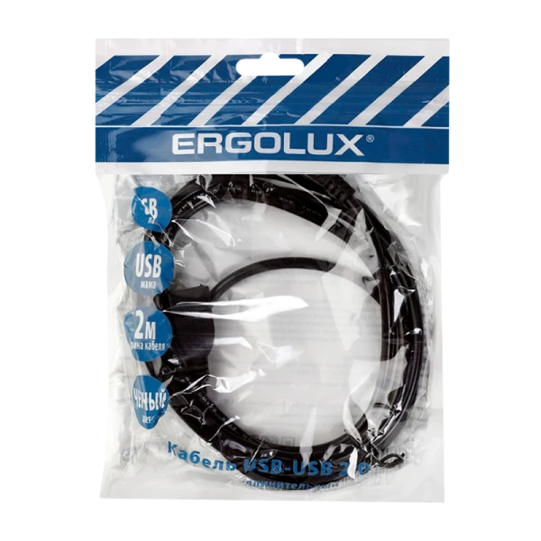 Кабель Ergolux ELX-EC01P-USB USB (m)-USB (f) 2м ПВХ черный пакет с подвесом (1/10/150)