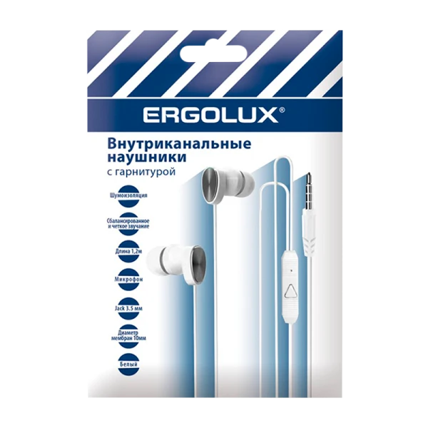 ERGOLUX ELX-WHP02P-C01 ПРОМО - вакуумные наушники с микрофоном и аудиоразъёмом Jack 3.5 мм. Идеальны для использования с компьютером, смартфоном и планшетом.