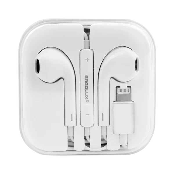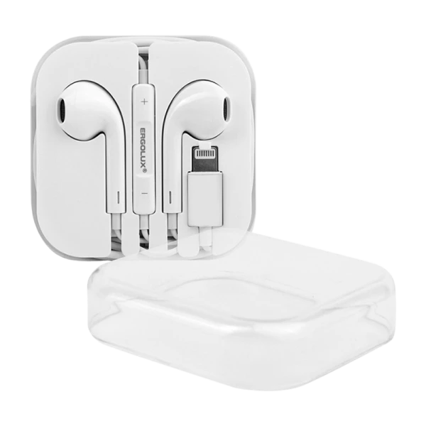 Наушники вставные Ergolux ELX-WHP04-C01 с микр. Lightning (m) белый (1/10/200)