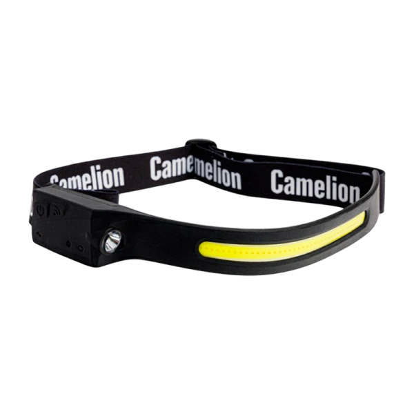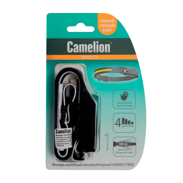 Фонарь Camelion LED53406 представляет собой налобную модель, работающую от встроенного аккумулятора на 3.7В. Корпус выполнен из пластика черного цвета, что обеспечивает его долговечность и устойчивость к внешним воздействиям. Модель оснащена двумя типами светодиодов: LED для дальнего света и COB для ближнего. Переключение между режимами осуществляется с помощью сенсорного датчика, что добавляет удобства в использовании.