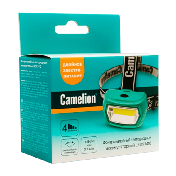 Фонарь налобный Camelion LED53410 3W COB от батареек 3хААA Type-C 3 режима зеленый (1/12/96)