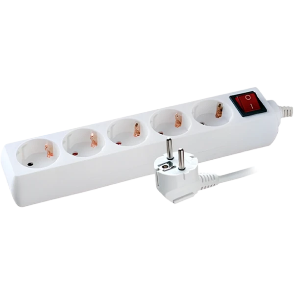 Удлинитель Volsten 5р.С/З 10A 3.0м с выкл. ПВС 3x0.75мм² IP20 белый (1/30)
