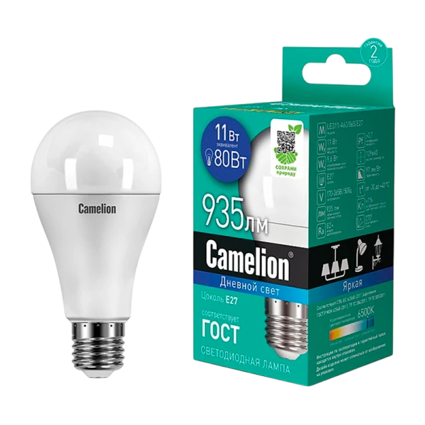 Светодиодная лампа Camelion LED11-A60/865/E27 мощностью 11Вт предназначена для освещения жилых, офисных и коммерческих помещений. Обеспечивает яркий световой поток 935 лм.