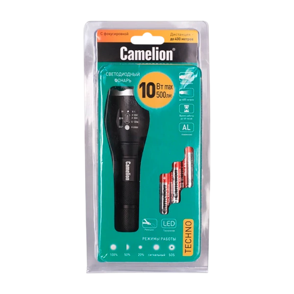 Camelion LED5136 – универсальный фонарь с ближним и дальним светом, фокусировкой ZOOM и 5 режимами. Прочный алюминиевый корпус. Универсальность: ближний + дальний свет с фокусировкой ZOOM. Несколько режимов работы, включая энергосберегающие. Большая яркость. Противоударность, Фокусировочную линзу можно открутить и использовать как увеличительное стекло.