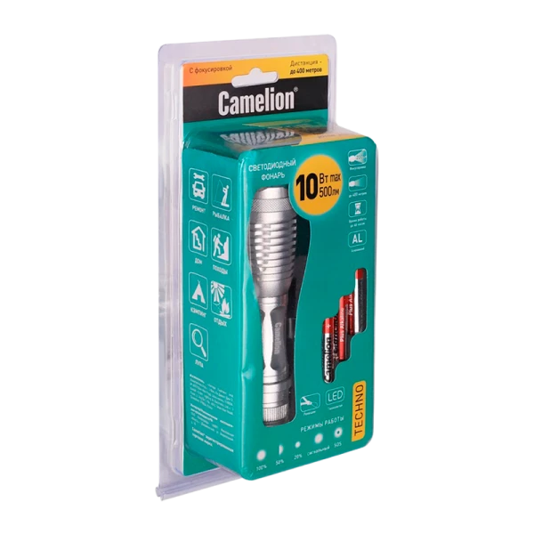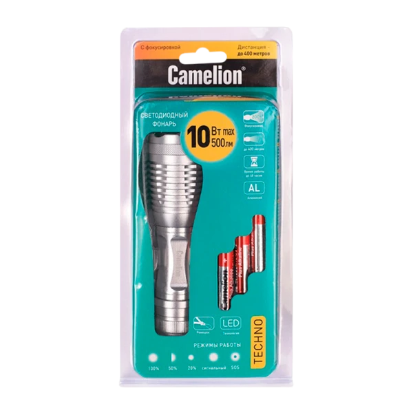 Фонарь ручной Camelion LED5137 10W LED 5 режимов+ZOOM +3AAA титан (1/6/24)