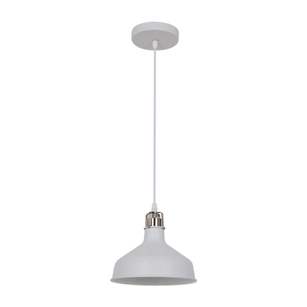 Подвесной светильник Camelion PL-425S C71 идеально подходит для интерьеров квартир, загородных домов, кафе и ресторанов. Мощность 60Вт, цвет корпуса белый с хромом, материал сталь, освещает до 3 м2.