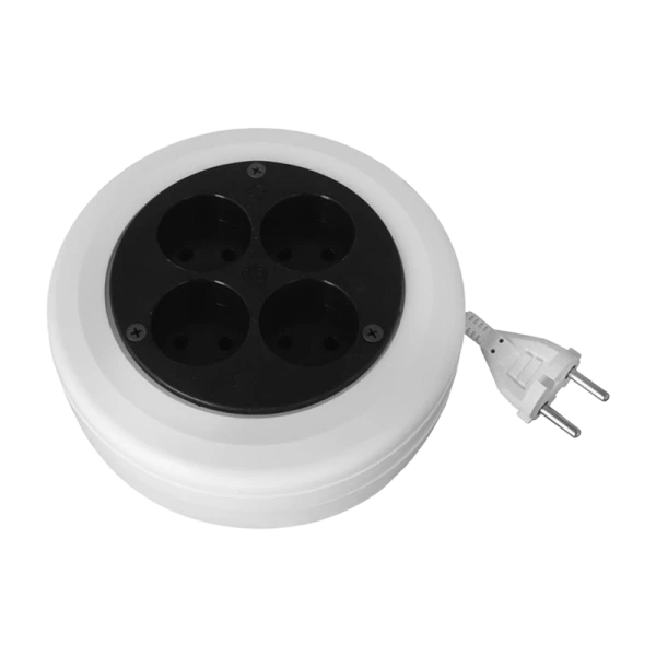 Удлинитель-рулетка Volsten SR 4x3-R без заземления позволяет подключить до 4 электроприборов одновременно. Провод удобно прячется в корпус, что позволяет регулировать его длину при использовании прибора, а также компактно хранить удлинитель.