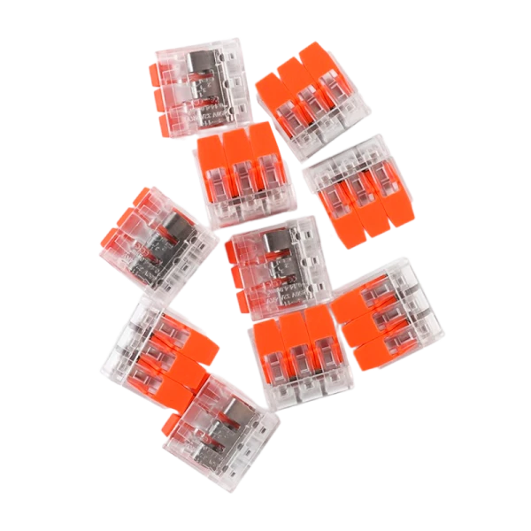 Строительно-монтажные клеммы Volsten серии 221 предназначены для соединения одножильных и многожильных проводов сечением от 0,2 до 4 мм2. Усовершенствованная конструкция плоских легкозащелкиваемых рычагов позволяет быстро и надежно соединить проводники.
