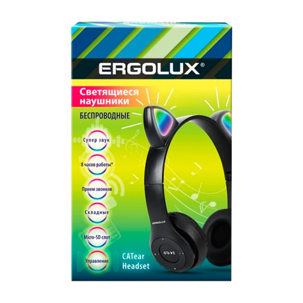 Полноразмерные ERGOLUX ELX-BTHP02-C02 - инновационные накладные беспроводные наушники со светящимися ушками и микрофоном. Подойдут для работы с ПК и мобильными устройствами. Оснащены Bluetooth V5.3, MP3-плеером и FM-радио. Светящиеся кошачьи ушки, складная конструкция, время работы до 8 часов. Подходят для IOS и Android, совместимы с различными устройствами.
