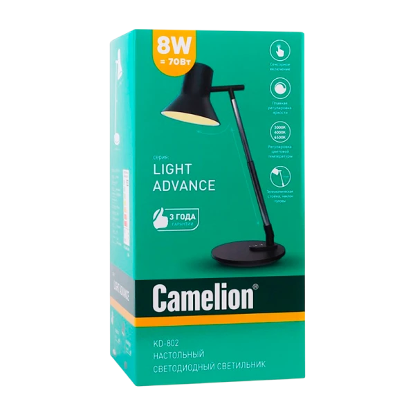 Светильник настольный Camelion KD-802 8W 230V LED на основании сенс. черный (1/6)