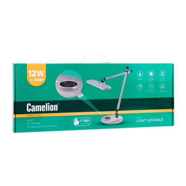 Светильник KD-879 C03 серебро LED от CAMELION представляет собой высококачественный светодиодный настольный светильник мощностью 12 Вт и световым потоком 700 лм. Корпус выполнен из прочного и стильного серебристого пластика, а стойка изготовлена из алюминия. Благодаря этому сочетанию материалов, светильник отличается высокой надежностью и долговечностью.
