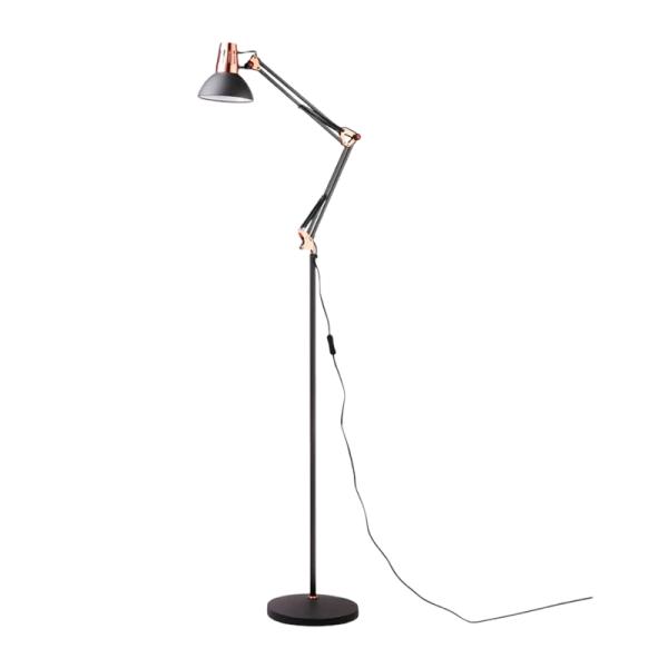 Светильники напольные для использования с лампами накаливания предназначены для освещения индивидуального пространства во время работы или отдыха. Напольный светильник Camelion KD-431F C62 черная медь с мощностью 40Вт, цоколь E27, IP20 идеально подходит для освещения дома и офиса. Серия KD-431F.