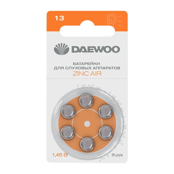 Батарейка Daewoo ZA13 BL6 Zinc Air 1.45V (6/60/600/3000)