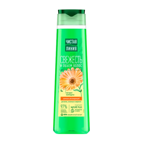 Новая формула шампуней Чистая Линия создана для видимой силы и густоты волос. Технология биоферментации делает привычные натуральные компоненты до 60 раз эффективнее. Волосы становятся плотнее и гуще по всей длине. Шампунь Регулирующий для волос, склонных к жирности с экстрактами календулы, шалфея, тысячелистника - контролирует активность сальных желез и надолго сохраняет ощущение свежести и чистоты. Активные натуральные компоненты снижают излишнюю жирность кожи головы и волос, не пересушивая корни. В календуле содержатся каротиноиды, флавоноиды (биологически активные вещества, обладающие антиоксидантными свойствами), кумарины и прочие полезные для кожи вещества. Благодаря им календула очищает, освежает, тонизирует. Шампуни и бальзамы с добавлением шалфея питают кожу головы и волосы, а также нормализуют их состояние. Регулярное применение косметических средств на основе тысячелистника помогает вернуть волосам природную мягкость и объем.