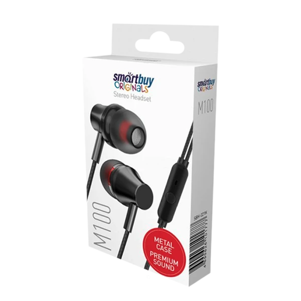 Наушники внутриканальные Smartbuy M100 с микр. черный в коробке (1/60)