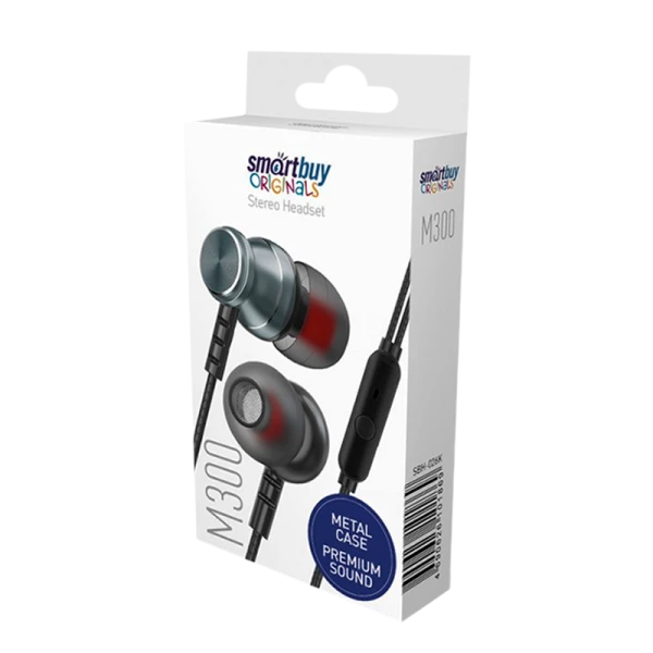 Наушники внутриканальные Smartbuy M300 с микр. серый в коробке (1/60)