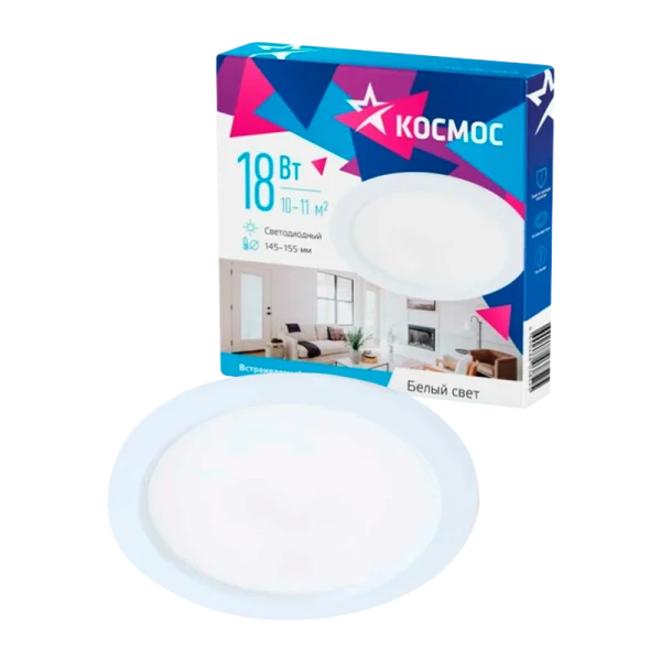 Светодиодная панель, круглая, цвет белый, КОСМОС DownL 18W, 180-265В, 4000K (KDownL18W4000K)