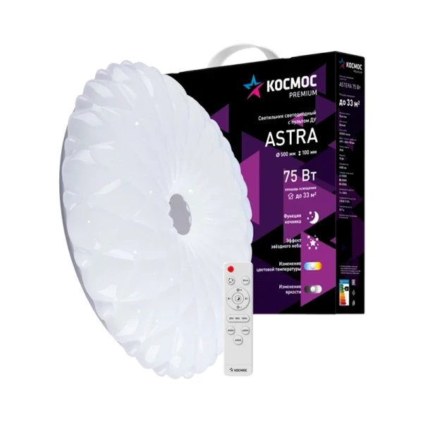 Светильник настенно-потолочный Космос ASTRA Premium 75W 230V LED накладной пульт ДУ белый (1/5)