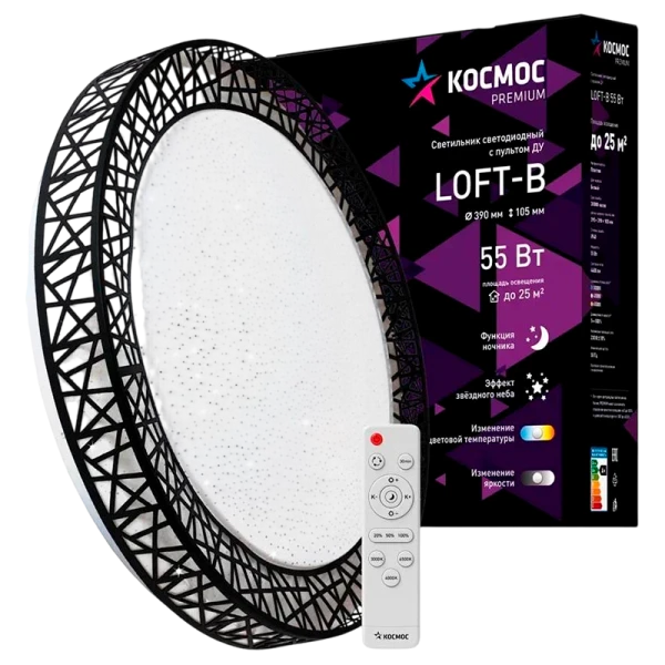 Светильник настенно-потолочный Космос Loft-B Premium 55W 230V LED накладной пульт ДУ черный (1/5)