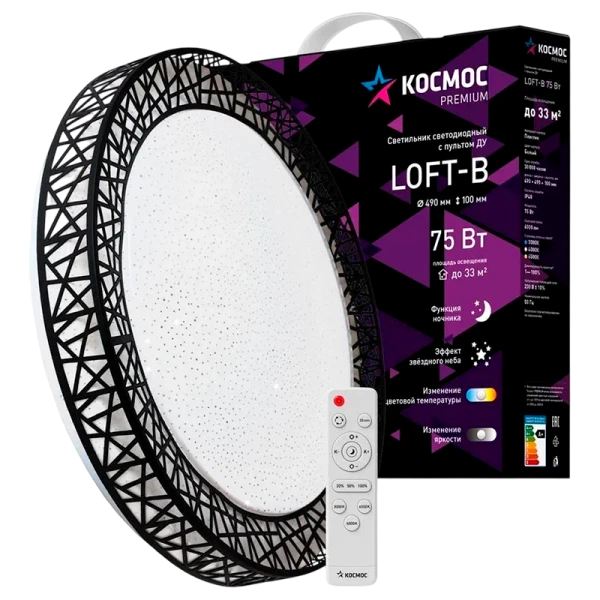 Светильник настенно-потолочный Космос Loft-B Premium 75W 230V LED накладной пульт ДУ черный (1/5)