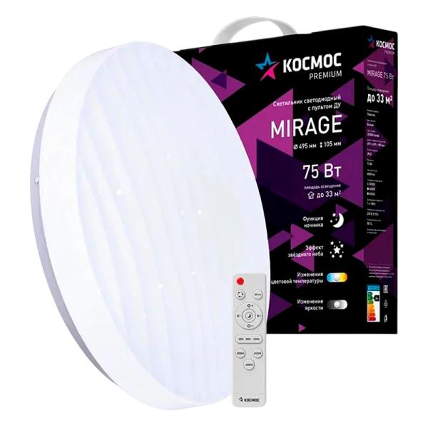 Светильник настенно-потолочный Космос MIRAGE Premium 75W 230V LED накладной пульт ДУ белый (1/5)