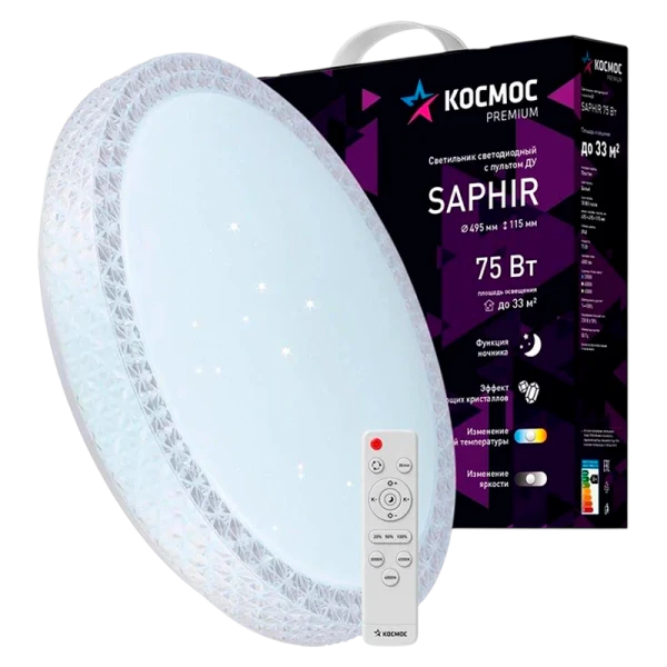 Светильник настенно-потолочный Космос SAPHIR Premium 75W 230V LED накладной пульт ДУ белый (1/5)