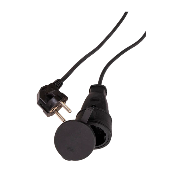 Силовой удлинитель в виде шнура, с одного конца литая вилка с другого конца прорезиненное гнездо с заземлением и защитной крышкой. Идеальный вариант для подключение садовой и рабочей техники на удалении в любых условиях. Черный кабель КГ (Кабель гибкий) – это кабель силовой очень гибкий с изоляцией и оболочкой из резины. Морозоустойчив до -40 градусов и максимальной мощностью нагрузки 3500Вт. 50м, 10А, IP44, КГ 2х1мм.