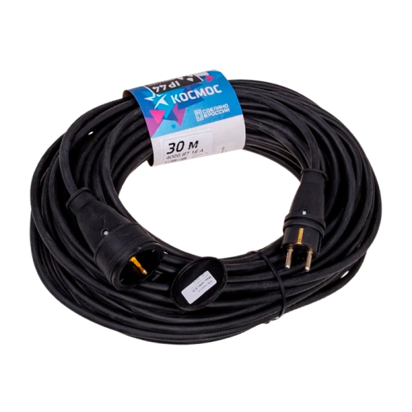 Удлинитель шнур КОСМОС 30м 1 гнездо КГ 2х1.0 мм 10А 220-350В 3500Вт каучук IP44 Россия УХз16