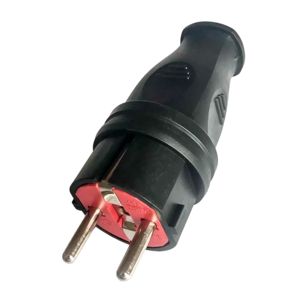 Универсальная соединительная электрическая вилка Космос из поливинилхлорида с медными лужеными контактами.