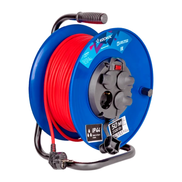 Удлинитель Космос 4р.С/З 16A 50.0м ПВС 3x1.5мм² IP44 на катушке (1)