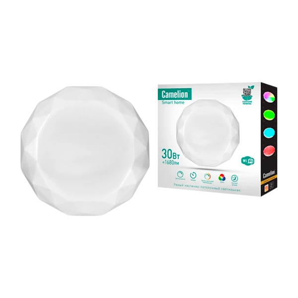 Светильник потолочный Camelion Smart Home 30W LED IP20 накладной WiFi диммируемый белый (1/5)