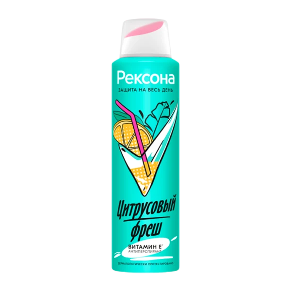 Антиперспирант-аэрозоль Rexona Цитрусовый фреш, разработанный специально для молодой кожи с 14 лет. Его мягкая и эффективная формула – это гарантированная защита от пота и неприятных запахов.