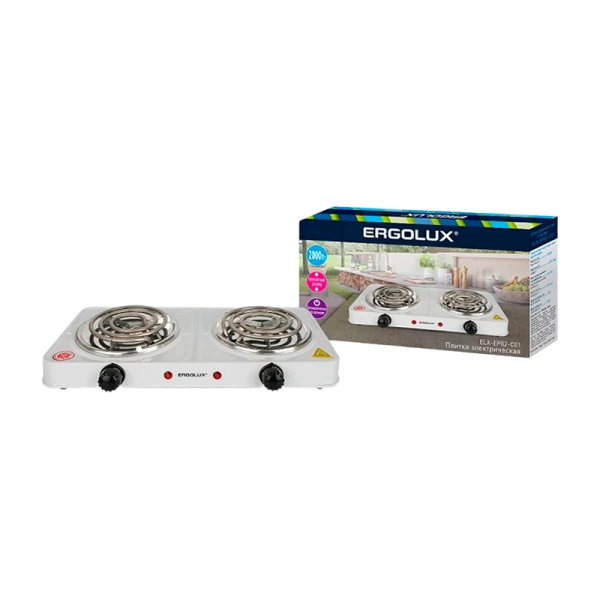 Электроплитка Ergolux ELX-EP02-C01 2 конф., спиральный нагр.эл.2000W 220-240V белый (1/6)