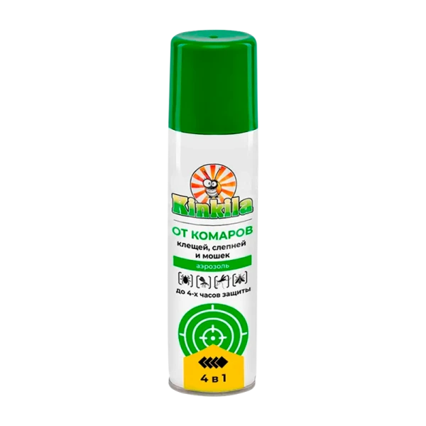 КИНКИЛА репеллентный аэрозоль от комаров, клещей, слепней и мошек (4 в 1) 150мл (1/24)
