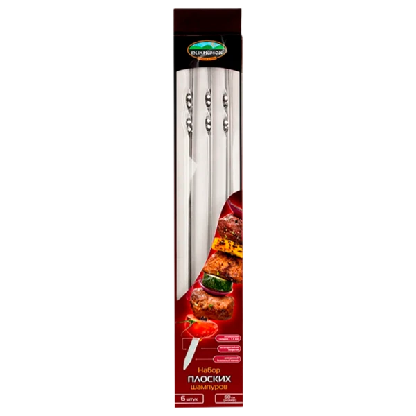 Набор плоских шампуров "ПИКНИЧОК", толщина 1,5мм, 60см, ширина 1см, 6шт. в бл + картон. упак. (1/18)